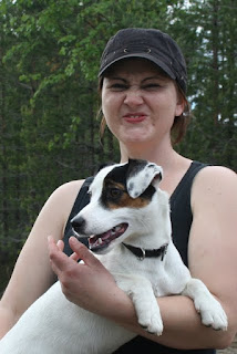 På lørdag traff jeg Eva for å trene litt! Vi begynte formiddagen med at Pepper fant noe ordentlig illeluktende dritt av noe slag, og rullet seg godt inn i det! Fyttigrisen det luktet død ass!!!! Men heldigvis hadde Eva shampoo i bilen, og elva var like nedenfor! =0) Pepper måtte derfor ufrivillig bade i kaldt elvevann...hehe... Han digger å vasse, men ikke akkurat bade i kaldt vann! Men sånn går det når han gjør sånn!